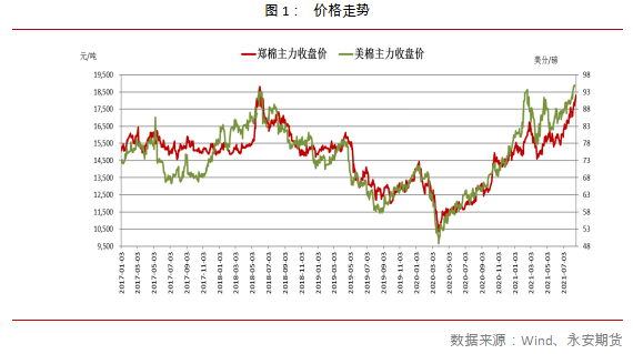 從時間上講,當前已經(jīng)進入紡織服裝行業(yè)傳統(tǒng)的“金九銀十”旺季,不少服裝企業(yè)都在提前備貨,迎接即將到來的“雙十一”電商節(jié)。韓志強是一家高級女裝生產(chǎn)企業(yè)的負責人,工廠大部分的面料都是從國外進口,由于國內(nèi)需求增加,他們近期也加大了服裝面料采購力度。韓志強告訴央視財經(jīng)記者,隨著服裝銷售旺季的到來,近一段時間以來,全國各地門店的女裝銷量都有了明顯提升。國內(nèi)市場的回暖也讓部分服裝企業(yè)抓緊開拓內(nèi)需市場。何吉云所在的服裝企業(yè),原來一直從事高端女裝的外貿(mào)訂單生意,去年受到疫情影響,整個外貿(mào)訂單處于停擺的狀態(tài),于是他們開始轉(zhuǎn)型,產(chǎn)品由出口轉(zhuǎn)內(nèi)銷。另一方面,內(nèi)需市場同樣有所改善。服裝社零數(shù)據(jù)2月/3月/4月分別同比增漲接近50%/近70%/30%以上,5月/6月當月同比增漲12.3%/12.8%,連續(xù)6個月實現(xiàn)雙位數(shù)增長。其中我們較為熟知的品牌如森馬服飾、貴人鳥、七匹狼等均取得了200%以上的增速,成績喜人。8月份,中美棉價在市場一片猶疑與期待中,雙雙站上新高。美棉主力12月合約最近于8月17日最高點至96.71美分/磅,這是7年來新高。同時和今年2月底高點95.6美分/磅及2018年6月初高點94.82美分/磅接近,基本是除2010/11暴漲行情外的高位區(qū)。鄭棉近期高點則是8月18日所至的18505元/噸。較此前2月底高點17080元/噸高出8.34%,而較2018年高點19250元/噸低3.87%。