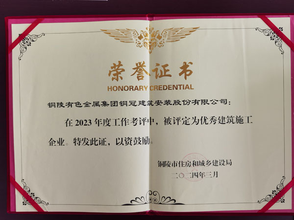銅陵市優(yōu)秀外向型建筑施工企業(yè)(2023年...