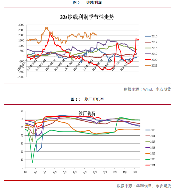 1、產(chǎn)業(yè)利好的直觀表現(xiàn):紡紗利潤高及開機率高棉花的直接下游是紗廠,因此紗廠的高利潤及高開機成為棉花產(chǎn)業(yè)利好的直接體現(xiàn)。去年10月份以來,紗廠維持高利潤和高開機率已經(jīng)較長時間,而今年以來的棉價上漲,產(chǎn)業(yè)因素上也大都有紗價上漲及紗廠利潤高企的推動。而目前重新逼近萬八的棉價,其對應的32支紗的利潤依然有2000元/噸。未來可以參照該兩個指標來衡量棉花端價格是否還有支撐及支撐在哪里。去年9月份是全產(chǎn)業(yè)庫存的低位,后來紗廠和布廠的原料庫存逐級補了起來,只有紗廠和布廠的產(chǎn)成品庫存在低位,但是再考慮棉紗貿(mào)易環(huán)節(jié)的庫存也大增,整體國內(nèi)原料、紗布庫存偏中性。3、產(chǎn)業(yè)逐漸傳來的利空:終端數(shù)據(jù)轉(zhuǎn)弱、坯布環(huán)節(jié)利潤無法傳導、訂單轉(zhuǎn)差、外單前置后對旺季可能不旺的擔憂……今年6、7月紡織產(chǎn)業(yè)鏈呈現(xiàn)了“淡季不淡”的特征,整體下游的訂單給予了良好的支撐。而且今年棉紗貿(mào)易環(huán)節(jié)有供應鏈金融的介入,導致棉紗的貿(mào)易環(huán)節(jié)蓄水池放大,也增加了棉紗的投機需求量。但進入8月以來,棉紗貿(mào)易環(huán)節(jié)漸近飽和,而下游淡季特征也趨于明顯。面臨節(jié)節(jié)走高的棉、紗價,從織布到服裝環(huán)節(jié)也出現(xiàn)承接不暢的情形,再加上坯布產(chǎn)能擴張后面臨過剩格局,導致坯布環(huán)節(jié)直接出現(xiàn)虧損。而且坯布環(huán)節(jié)的現(xiàn)金流變得緊張,主要是賬期未變或者因疫情擾動變長的情況下,加上貨品單價上漲,導致應收賬款明顯擴大,同時又面臨上漲的原材料。最近,包括蘭溪等地,已出現(xiàn)了坯布停機的情況。外單方面,市場也普遍反映由于海運不暢,圣誕訂單已提前,目前已在發(fā)運中,因此會打破此前的淡旺季節(jié)奏。關于外單,有品牌商表示,當前已接到明年春夏訂單,因此外單是前置而非透支。但是相較數(shù)量更大的圣誕訂單,確實外單有所轉(zhuǎn)弱,這個也需要進一步觀察。關注行業(yè)動向,撥開2021年行情迷霧,抓住這波賺錢紅利期,一飛沖天吧!向您推薦一個不錯的公眾號